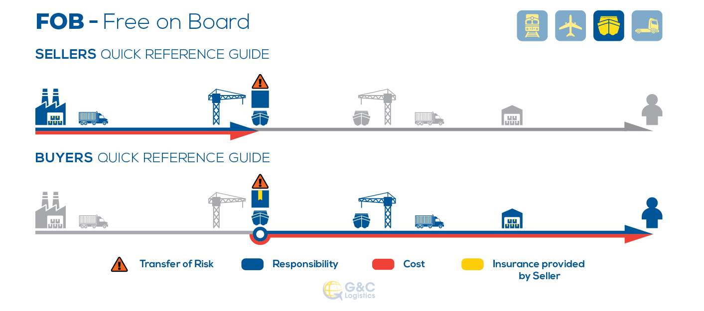 - FOB → Common for bulk goods; suitable when seller arranges loading.